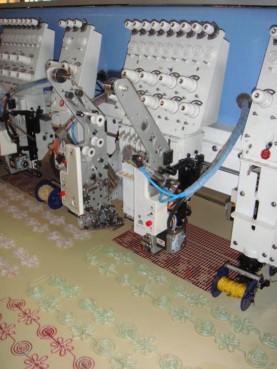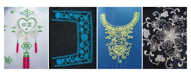 簡(jiǎn)易刺繡系統(tǒng)。其在平繡基礎(chǔ)上,增加了分頭控制簡(jiǎn)易盤帶繡(盤帶 繡和鋸齒繡等)的功能,基本實(shí)現(xiàn)了傳統(tǒng)盤帶繡的所有功能,繡作效 果也有顯著提高,更好地滿足了實(shí)際繡作過(guò)程的需要。不占用單獨(dú)機(jī) 頭位,并且和金片裝置一樣,可以加裝在首、末針位置,有效的節(jié)省 空間。安裝方便,簡(jiǎn)單易用,運(yùn)轉(zhuǎn)速度顯著上升,補(bǔ)繡質(zhì)量和生產(chǎn)效 率也得到很大提高,真正實(shí)現(xiàn)了速度與繡品質(zhì)量的完美結(jié)合, |