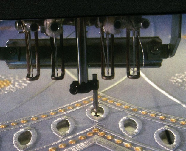 【雕孔繡】是借助雕孔刀或雕孔針等工具在繡花機上雕孔后進包邊刺繡,這樣做出的繡孔比較漂亮。【獵邊繡】其實與一般的平繡無異。只是在完成繡品的加工后,由后道的雜工,用電烙鐵在需要留孔的地方燙割,達到同雕孔差不多的效果,獵邊繡多見于領花。并且所用布料,必須是帶化纖性質的布料,才適合獵邊。純棉布料只適合雕孔繡而不適合獵邊繡。因為棉布遇熱燃燒后變成碳。象雕孔繡和獵邊繡看起來是很相似,但打法是一點都不同。雕孔繡有分原裝機和平繡機,市場上現(xiàn)在還新研發(fā)了激光機,不過技術不成熟,到目前為止,還是很少人在用。用原裝機的也少之又少,做雕孔還是用平繡機的多.